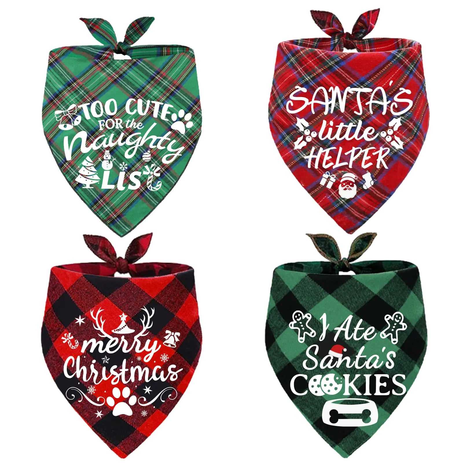 Unique Designs for Festive Spirits: Featuring 4 triangle dog bandanas adorned with classic plaid and festive messages like "Merry Christmas" and "Santa’s Little Helper." Transform your pet’s look for the holiday season with these adorable additions.